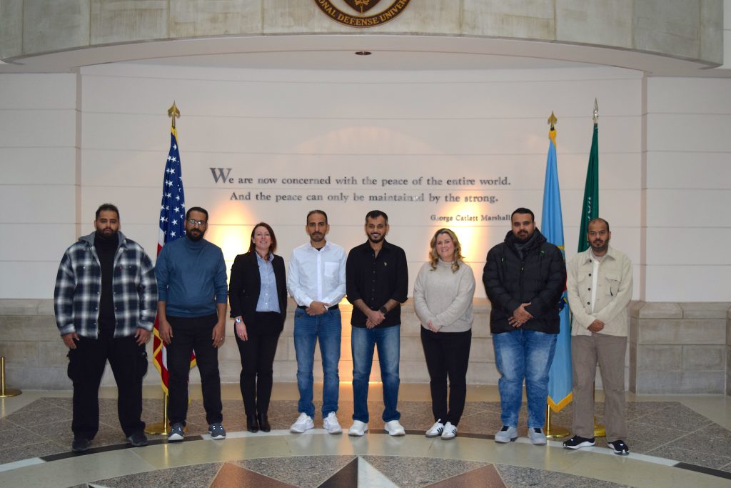 From 20–22 Jan 2026, the Near East South Asia (NESA) Center for Strategic Studies team who are forward deployed as advisors to the Kingdom of Saudi Arabia National Defense University (KSA NDU), hosted an exploratory visit for the KSA NDU Media Department. The aim was to provide our partners with a sampling of best practices in policy, procedure, staff training, corporate branding, museum curation, continuous improvement and in several technical areas of practice. Participants included the KSA NDU Director of Media and Museums, his second in command, and his team.